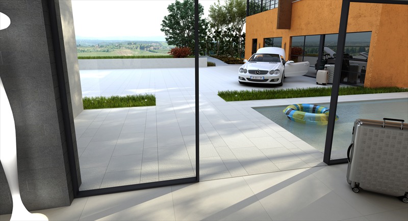 磁器質で無釉 表面は程よいザラザラ感 滑りとめ効果もありますので屋外床に最適です