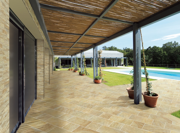 天然石のバラツキある意匠を忠実に再現した床タイルです。