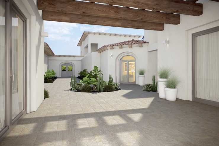有色素地に加飾を施し、天然石特有のキラキラ感まで再現したクヲーツサイト調床タイルです。
