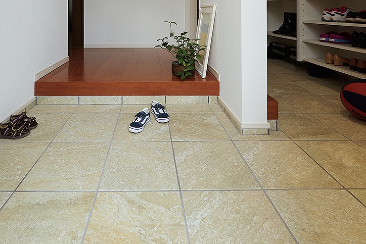 花粉の入り口でもある玄関に持ち込まれる環境アレルゲンの働きを玄関で抑制する効果が期待できます。 <アレルピュア エントランスフロア(玄関内床専用)> 玄関にタイルならではの気品と質感を与える床タイル。 その高い意匠性をそのままに、耐久性を与えたLIXIL独自のコーティング技術で、抗アレルゲン剤を固着させました。 住まいの中に持ち込まれる環境アレルゲンの働きを玄関で抑制する効果が期待できます。 商品の留意点 ●アレルピュアエントランスフロアの共通注意事項(カタログ)をご覧ください。 ●同一面状の外装床タイル(ライトスレート・セラバサルト)の商品の留意点をご覧ください。 ●上記の同一面状の外装床タイルとは、色合い・光沢が異なります。現物サンプルにてご確認ください。 ●すべりにくい面状と防汚・清掃性をあわせ持つマイクロガードフロア仕様です。 ●アレルピュアエントランスフロアは玄関内床(玄関ドア内側床)専用商品です。屋外や玄関ドアの外、居室の床や壁には使用できません。 施工上のご注意 ●同一面状の外装床タイル(ライトスレート・セラバサルト)の商品の施工上のご注意をご覧ください。