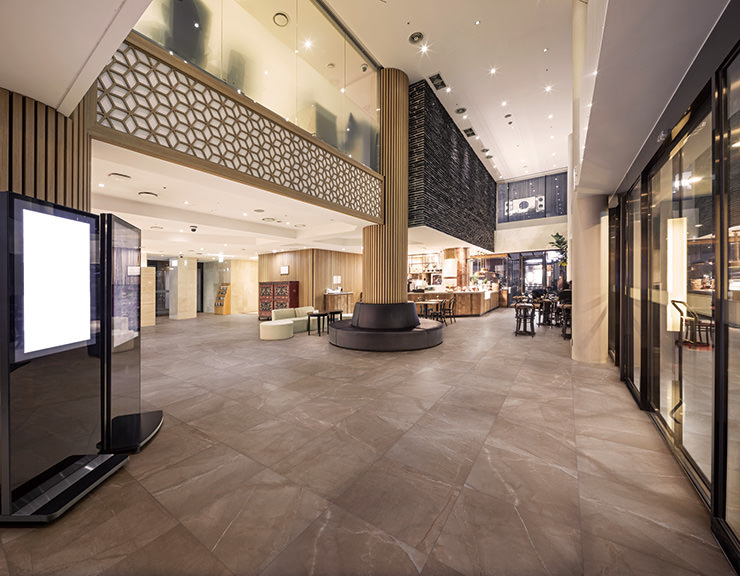 ウォーム系のカラーバリエーションで揃えた大理石調タイルです。用途に合わせた面状や内壁専用品などアイテムが充実しています。