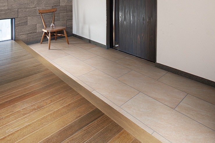 花粉の入り口でもある玄関に持ち込まれる環境アレルゲンの働きを玄関で抑制する効果が期待できます。 <アレルピュア エントランスフロア(玄関内床専用)> 玄関にタイルならではの気品と質感を与える床タイル。 その高い意匠性をそのままに、耐久性を与えたLIXIL独自のコーティング技術で、抗アレルゲン剤を固着させました。 住まいの中に持ち込まれる環境アレルゲンの働きを玄関で抑制する効果が期待できます。 商品の留意点 ●アレルピュアエントランスフロアの共通注意事項(カタログ)をご覧ください。 ●同一面状の外装床タイル(ライトスレート・セラバサルト)の商品の留意点をご覧ください。 ●上記の同一面状の外装床タイルとは、色合い・光沢が異なります。現物サンプルにてご確認ください。 ●すべりにくい面状と防汚・清掃性をあわせ持つマイクロガードフロア仕様です。 ●アレルピュアエントランスフロアは玄関内床(玄関ドア内側床)専用商品です。屋外や玄関ドアの外、居室の床や壁には使用できません。 施工上のご注意 ●同一面状の外装床タイル(ライトスレート・セラバサルト)の商品の施工上のご注意をご覧ください。