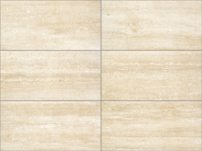 エレガントなトラバーチンをモチーフにした大理石調タイルです。大胆に流れる脈模様が見えるような刃を入れたベインカットと、それを横断するように刃を入れたクロスカットがあります。 ■注意事項■ ●ベインカットは流れ模様が一定方向に入っています。 ●色幅の大きい商品になるため仮並べしてからの施工を強く推奨します。