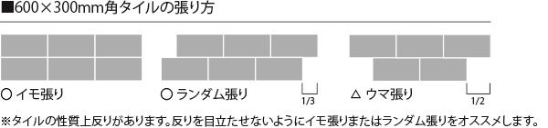 半磨きのフィニッシュを施し「華やかな雰囲気」のフロアを演出します。 <注意点> ●多少の寸法誤差がありますので、調整しながら施工願います。 ●半磨き仕上の600×300mm角は受注後のカット加工品となります。 ● 色むら、色幅を特徴とした商品です。 ●水濡れする床や勾配のある床では滑りやすくなることがありますのでご注意ください。 ●製品には多少の寸法誤差があります。 施工の際に5mm程度の目地をおとりください。