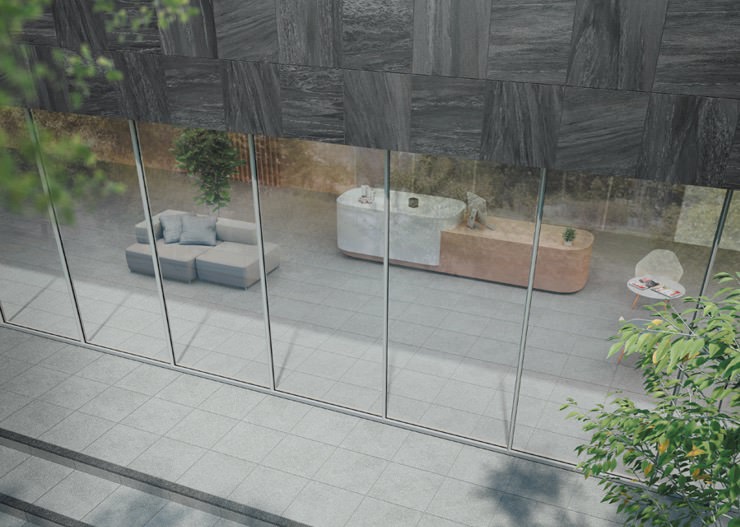 異なる大きさの粒状の表情が豊かな質感を表現するグラニット調内床・外壁、外床タイル。