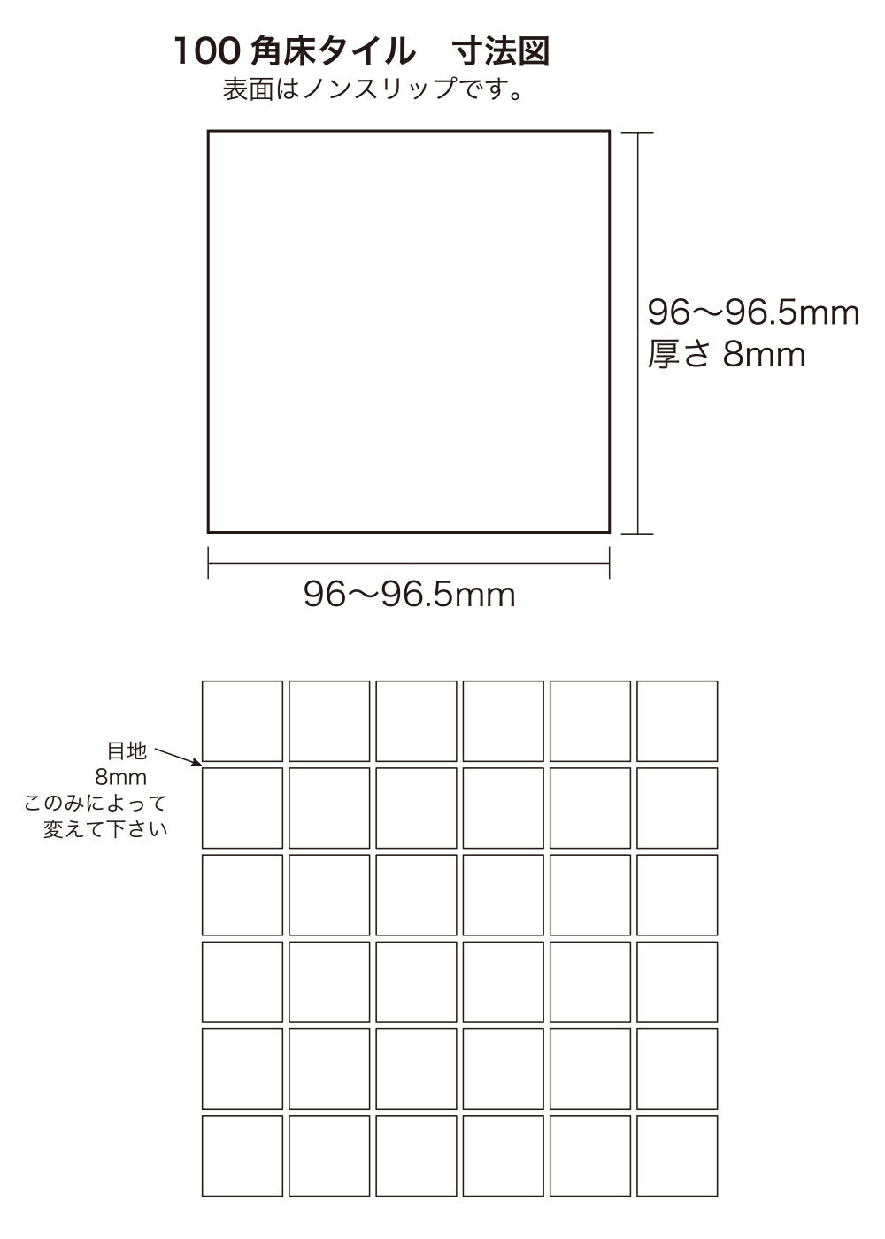 96×96×8mmの床タイルで表面はノンスリップです。 |