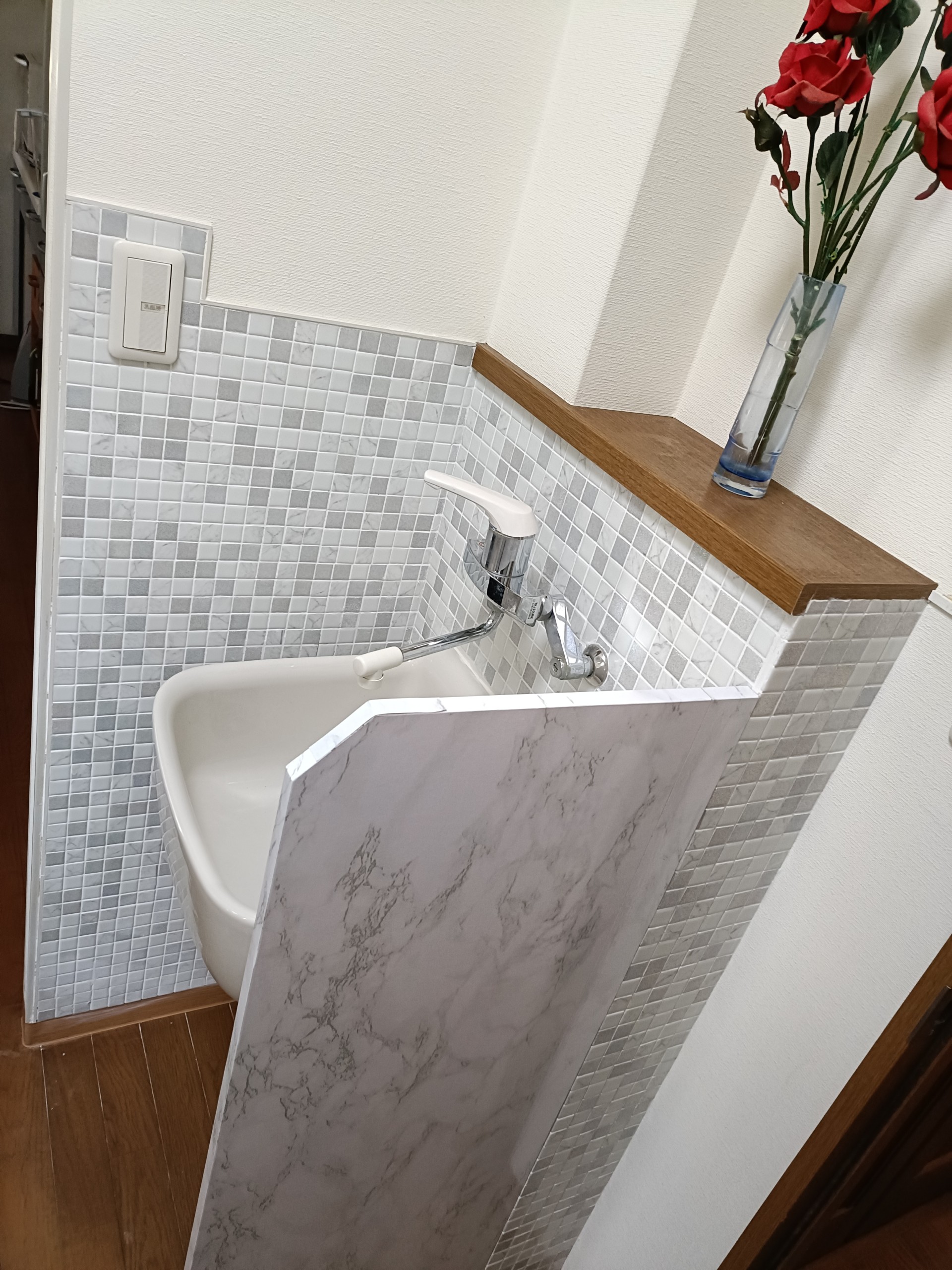 この商品のレビューです:モザイクタイル 25角 角丸形状 表面紙貼り ライトブルー系(¥750/シート以下) 53633SKS