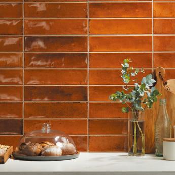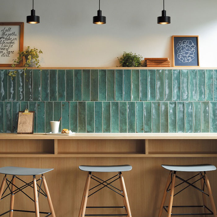 ゆらぎのある光沢感、色幅を持った懐かしい印象のタイルです。