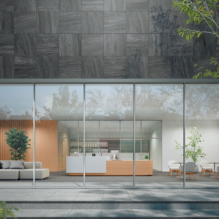 異なる大きさの粒状の表情が豊かな質感を表現するグラニット調内床・外壁、外床タイルです。